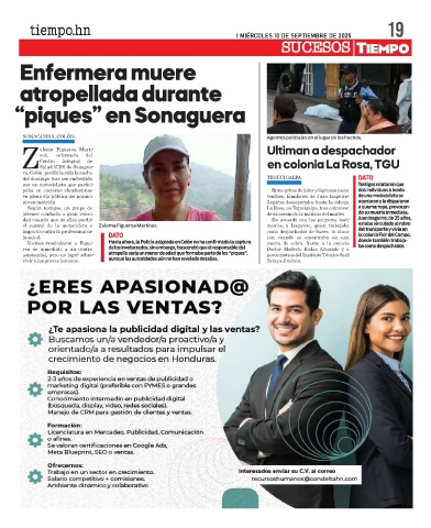 del domingo tras ser embestida TEGUCIGALPA. DATO