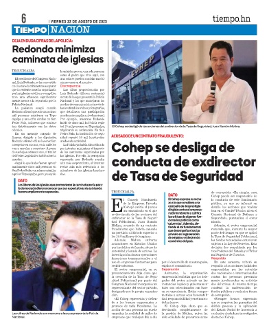 tan drásticamente con los datos tró 15 mil personas en Tegucigalpa, El Cohep se desligó de las acciones del exdirector de la Tasa de Seguridad, Juan Ramón Molina.
