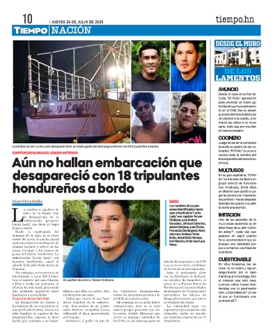 rastro del navío, lo que ha impul- Enil Martin y Orlin José Lara Ya le recomendaron que se