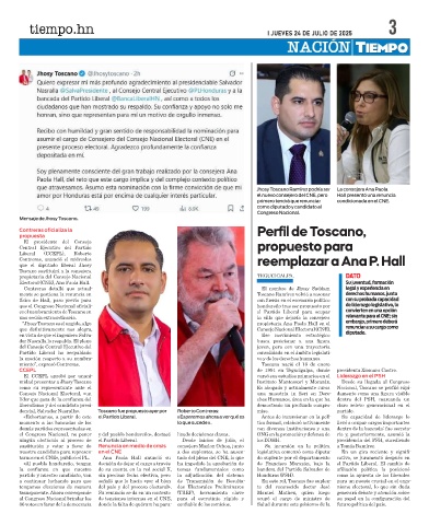 dencial, Salvador Nasralla». Toscano fue propuesto ayer por Roberto Contreras: miso. partido.