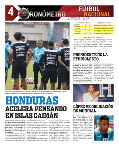 7 de junio se enfrentará en condi- aspiraciones de la 'H' de clasificar a rá en Islas Caimán. "está obligada a ir al Mundial".