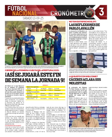 del Torneo Apertura 2025 de la Liga Nacional de Honduras que se extenderá hasta el lunes.
