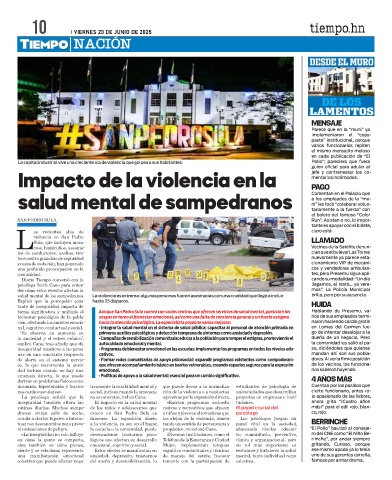 salud mental de los sampedranos. La violencia es extrema: algunas personas fueron asesinadas con una crueldad que llegó a incluir brilla, pero por su ausencia.