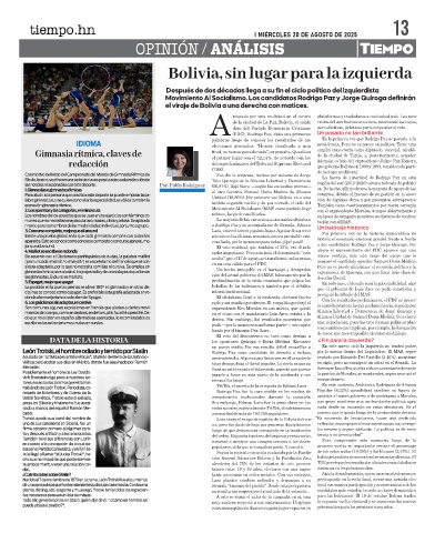 León Trotski, el hombre odiado y temido por Stalin Rodrigo Paz como candidato de derecha o incluso, por lo menos dentro del Legislativo. El MAS, repre-