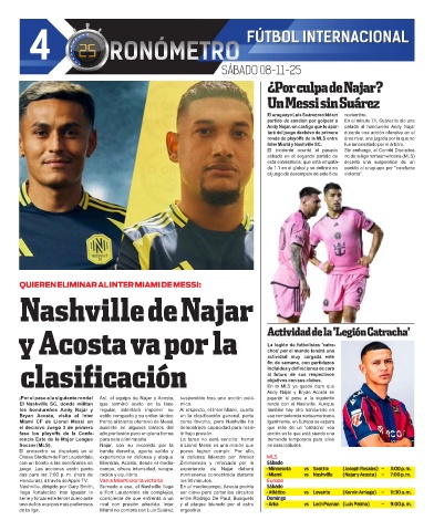 juego. Las acciones están pacta- campo, ofrece intensidad, recupe- experiencia de Najar deberá • Minnesota vs Seattle (Joseph Rosales) – 3:00 p. m.