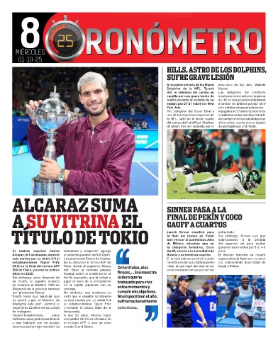 (N.5) en la final del torneo ATP Tokio, frente al argentino Sebas- Ocho títulos, diez ridas, al que logró derrotar en las break a Miñaur.