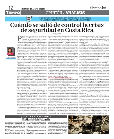 la Policía civil. por 100 000 habitantes. En 2013, con un gran esfuerzo, la lleva- Esta sí es mi opinión: la crisis de seguridad de hoy en Costa