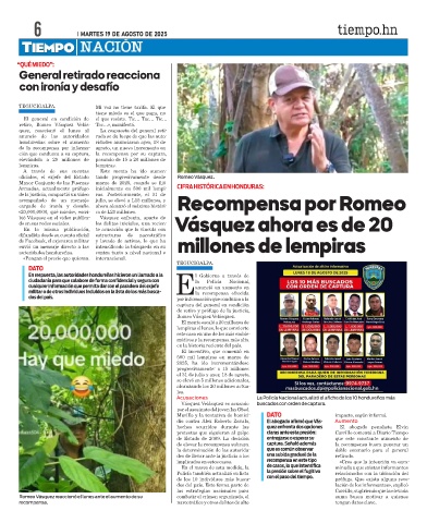 Romeo Vásquez reaccionó el lunes ante el aumento de su combatir el crimen organizado, el suma busca motivar a quienes