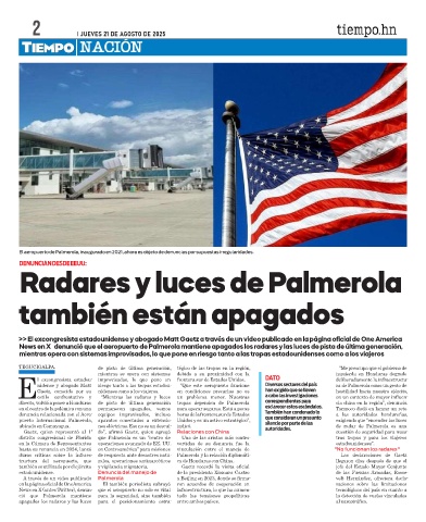 duras críticas sobre la infraes- de respuesta ante desastres natu- Palmerola y la relación diplomáti- Las declaraciones de Gaetz