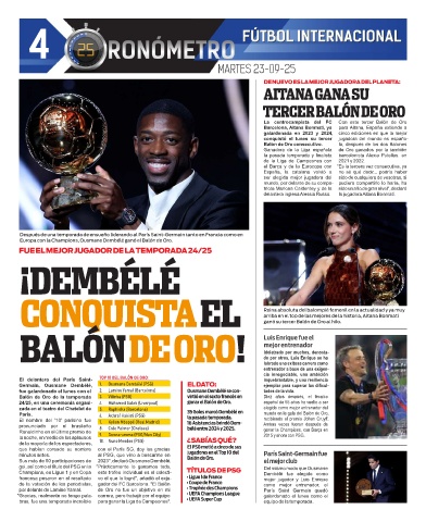 24/25, en una ceremonia organi- 4. Mohamed Salah (Liverpool) ganar el Balón de Oro. español de 55 años ha vuelto a ser