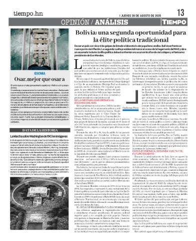 El 28 de agosto de 1963 tuvo lugar la que fue conocida como la Marcha so- rinflación incluida, gestada en el gobierno de izquierda de la Morales, a pesar de que su exvicepresidente, Álvaro García