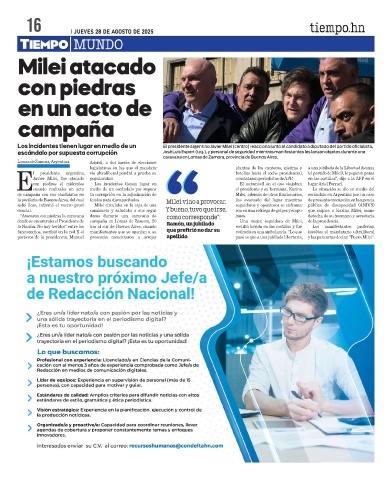 salió ileso, informó el vocero presi- Milei circulaba en la caja de una seguidores y opositores se enfrasca- pública de discapacidad (ANDIS)