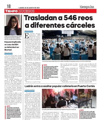 de imputada el pasado 24 de julio. Interventora del sistema peni- información en las oficinas • 381 reclusos trasladados de co Morazán.