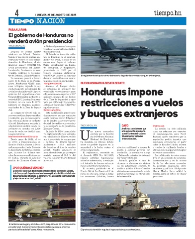 tración de Xiomara Castro se invertido. sobre los sobrevuelos, aterrizajes Además, prohíbe el uso de internacionales y en la antesa-