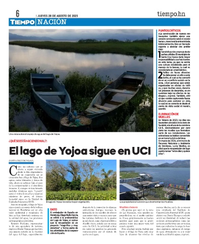 una mejora notable en la claridad ción de España. contaminación por el vertido de hacer y el lago de Yojoa está muy de agua obviamente va a ir mejo-