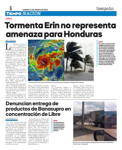 territorio hondureño. Tormenta Erin se formó en el Atlántico y avanza hacia el noroeste sin riesgo para Honduras.