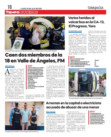Los sospechosos operaban en diferentes puntos del corredor turístico de Francisco Morazán. Sula – La Ceiba y según versio- y coordinar su traslado a un
