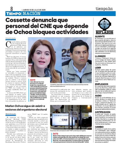 prensa, Ochoa cuestionó que incluye interferencia humana, Marlon Ochoa aseguró ayer que la única razón válida para convocar ta que, para no volver a meter las