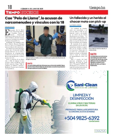 narcomenudeo y vínculos con la 18 chocar moto con pick-up