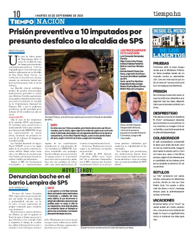 Según el MP, los funcionarios tras que sus registros de ubica- por el MP y aseguró que durante ción en la municipalidad de SPS”,