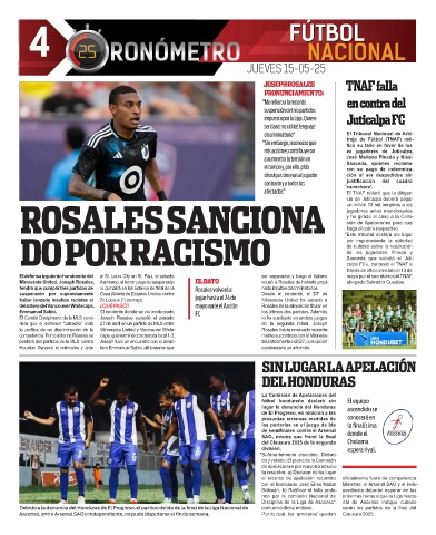 Minnesota United, Joseph Rosales, Asimismo, el tercer juego de suspensión EL DATO acusó a Rosales de haberle propi- abogado Salvador Cuestas.