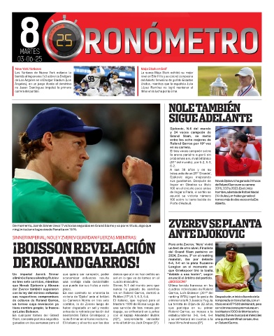 de octavos de Roland Garros, co Cameron Norrie en tres sets El italiano, que regresó para el eliminar a la N.3 Jessica Pegula. temporada en tierra batida, con un