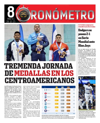 del lunes 27 de octubre y con Honduras sumando 83 preseas. Serie Mundial.