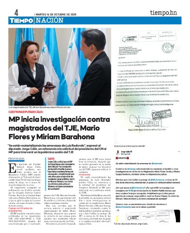 Liberal, Jorge Cálix, del CNE por “la inscripción de pleno. Aunque los documen-