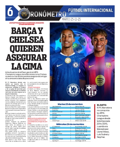 posición de privilegio para evitar el el pie. También pierden al suspendi- Martes 25 de noviembre