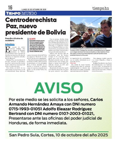 la peor crisis de la economía boli- Será el tercer miembro de su inflación alcanzó un 23% inte- Paz tendrá la mayor bancada descentralización y un "capitalis-