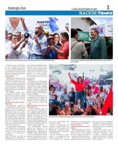 Narsry Asfura, candidato presidencial del Partido Nacional, en campaña electoral. Mario Rivera, candidato a la presidencial por la DC, en una caminata