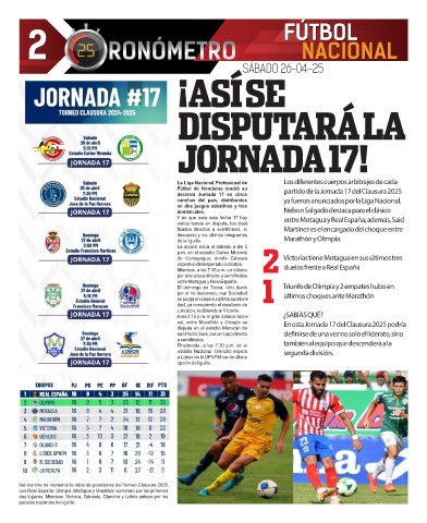 nal, entre Marathón y Olimpia se En esta Jornada 17 del Clausura 2025 podría
