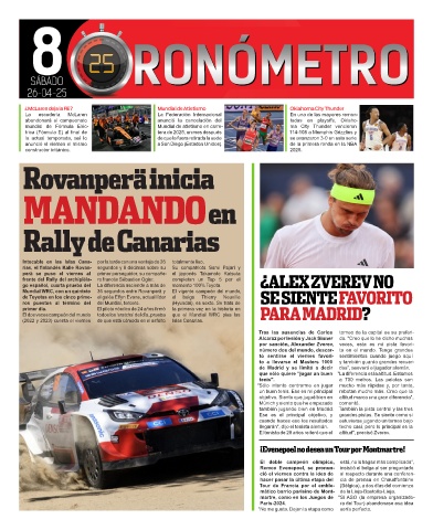 frente del Rally del archipiéla- ro francés Sébastien Ogier. completan un Top 5 por el ¿ALEX ZVEREV NO