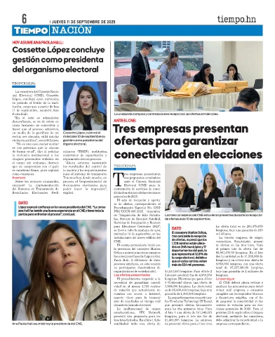 Ana Paola Hall asumirá hoy la presidencia del CNE. satelitales) hubo una oferta de no presentó oferta para el lote tres. empresa correspondiente.