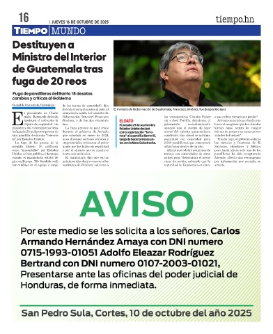 Arévalo en una alocución al país, al El ministro de Gobernación de Guatemala, Francisco Jiménez, fue despedido ayer.