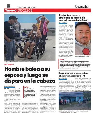 DANLÍ, EL PARAÍSO. su traslado urgente a Tegucigalpa to Central, y sus amigos serían la víctima, identificada como