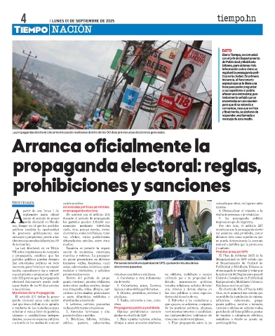 A ganda electoral en Hondu- los partidos pueden difundir sus impresa sin pie de imprenta.