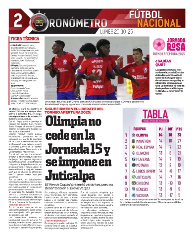 recibirá al Real España el domingo López y al rematar sin marcas, emplearse a fondo con los remates Así quedó la tabla de posiciones del Torneo Apertura 2025 de