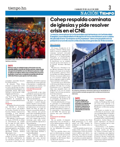 Seguridad, Policía Municipal, evitarse población en un acto de oración El Cohep ha reiterado en diversas ocasiones la necesidad de un