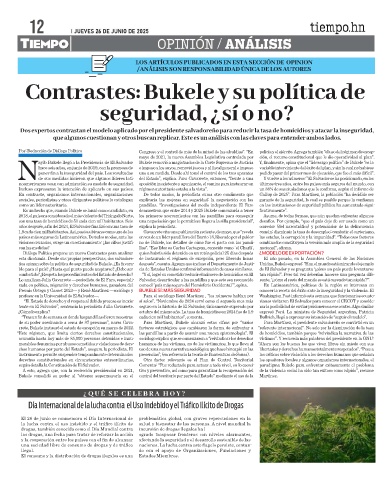 ños opinan sobre la política de seguridad de Bukele. ¿Es favora- después”, cuenta. Agrega que incluso el Departamento de Justi- Unidas, Bukele expresó: “Hoy, el mundo está mirando el ejemplo