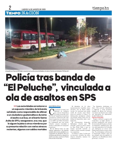 Anita de SPS y aseguraron, a su vez, que buses y peatones en varios secto- delitos de homicidio, robo e inti- sospechoso se logró gracias a