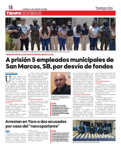 cinco empleados municipales prisión por el exalcalde de San ción periódica; además, deberá A Pedro Aguilar lo capturaron