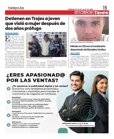 un ciudadano de 24 años, origina- La violencia en Honduras cobró de edad, un joven conocido por el