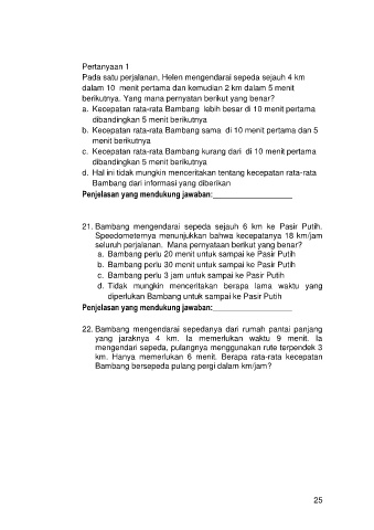 21. Bambang mengendarai sepeda sejauh 6 km ke Pasir Putih.