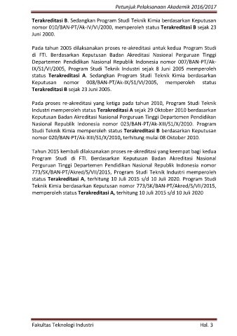 status Terakreditasi A. Sedangkan Program Studi Teknik Kimia berdasarkan