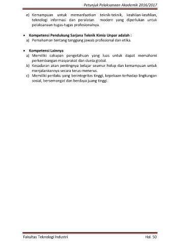 Kompetensi Pendukung Sarjana Teknik Kimia Unpar adalah :