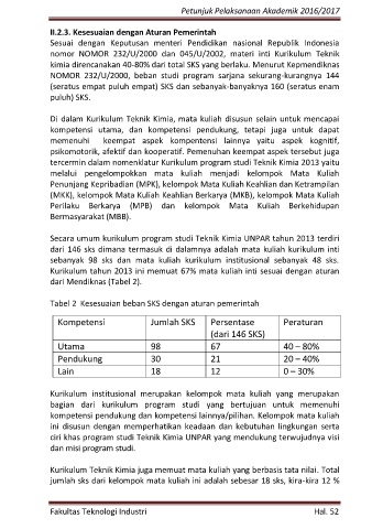 Tabel 2 Kesesuaian beban SKS dengan aturan pemerintah