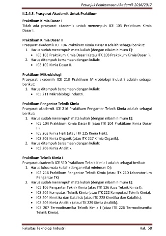 Prasyarat akademik ICE 216 Praktikum Pengantar Teknik Kimia adalah sebagai