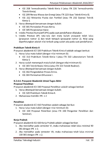 Prasyarat akademik ICE 320 Praktikum Teknik Kimia II adalah sebagai berikut: