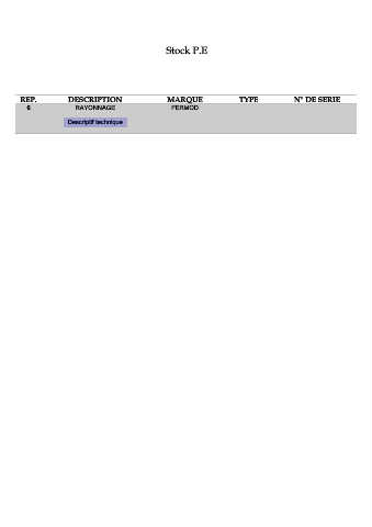 Stock P.E REP. DESCRIPTION MARQUE TYPE N° DE SERIE 6 RAYONNAGE FERMOD Descriptif technique